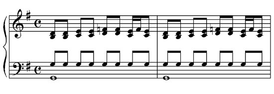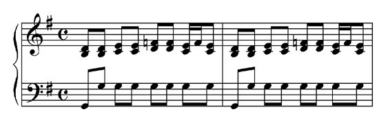Another option for varying and improving the Moving Pair riff is ‘anticipation’ of the beat in the left hand.