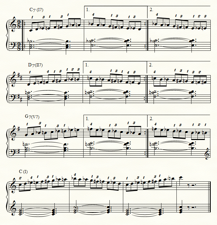 These studies should persuade you that the chromatic dominant ('ChromDom') scale is a real part of the popular music sound, and give you a good incentive to perfect your performance.
