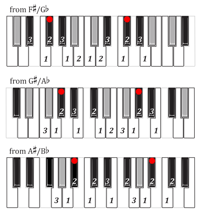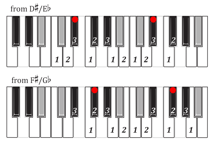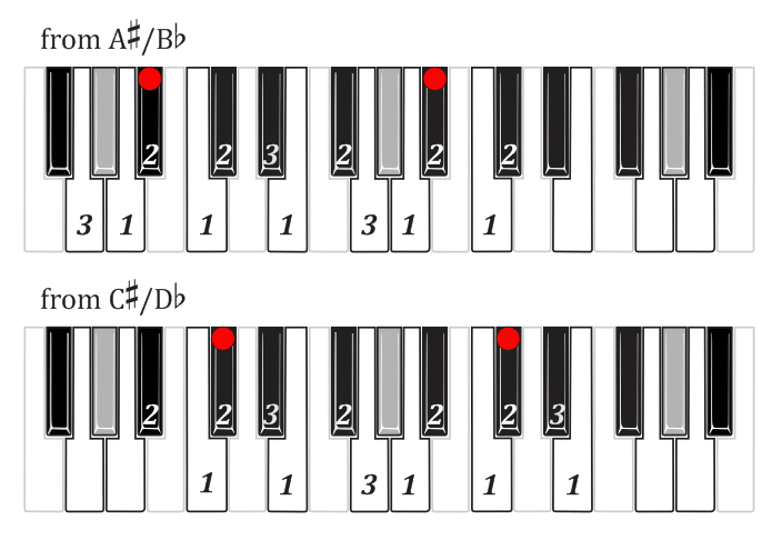Black-key, whole-tone/semitone