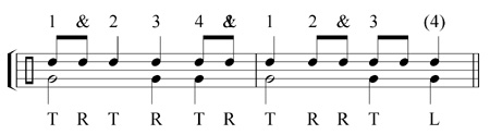 10. Work hard at not ignoring the counting and TLR (together-left-right) text above and below the beat maps – a great danger when there are music notes to read! It is well proven that viewing rhythmic patterns from counting and TLR perspectives speeds the build-up of rhythmic and syncopation skills.
