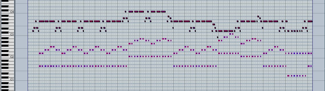 The key is G. In the sequencing software used to process the audio and MIDI, one whole chorus of the boogie looks like this.