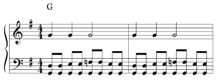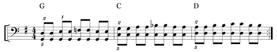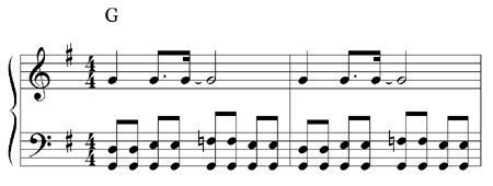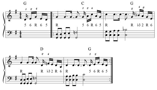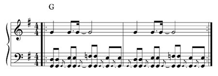 The audio/MIDI demonstrates two bars of each type, repeating, just in G.
